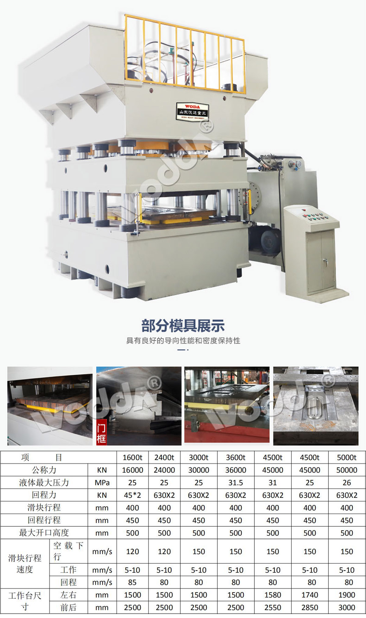 山東沃達重工專注不銹鋼門面壓花機研發(fā)生產(chǎn)多年,擁有生產(chǎn)2400噸鋼木門壓花機~15000噸防盜門壓花機的經(jīng)驗,支持定制單動、雙動鋼木門壓花機,產(chǎn)品遠銷海外。